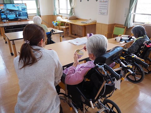 昼食後、体調や身体に変化がないか気を配りながら対応していきます。