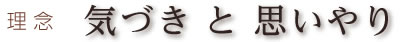 法人名「気づき」と事業所名「思いやり」は、私たちの理念「気づきと思いやり」に基づいています。社会福祉法人として公益性と透明性の高い確たる経営基盤を築き、子どもから高齢者まで疾病に関わらず共に暮らせる社会の実現を目指していきます。